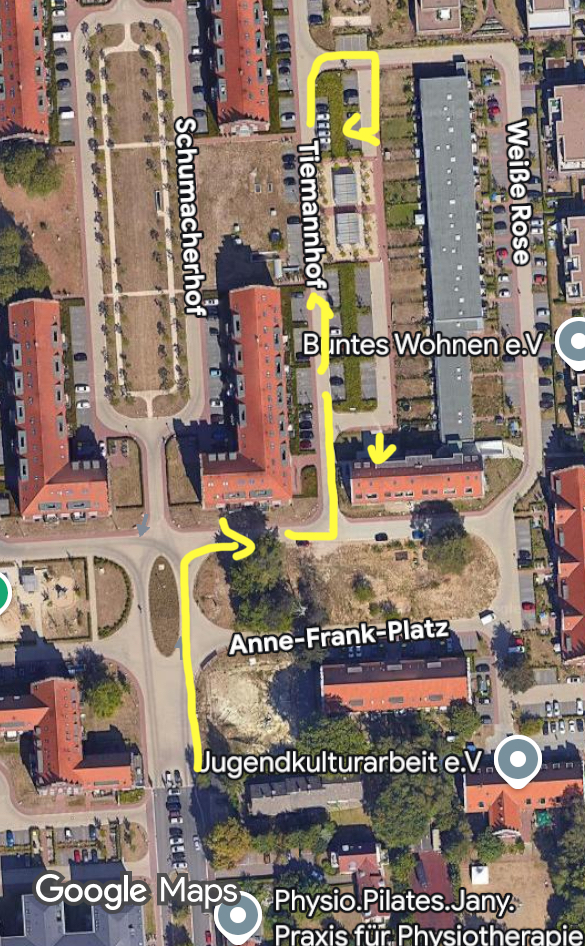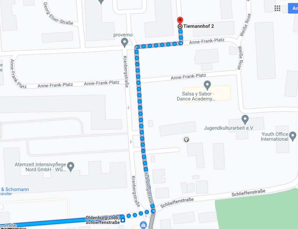 Mit öffentlichen Verkehrsmitteln: Die Bushaltestelle „Schlieffenstraße“ ist in ca. 7-8 min. Fahrt von den Haltestellen Lappan oder Hbf zu erreichen. Von dort aus sind es ca. 5 min zu Fuß zur Praxis.